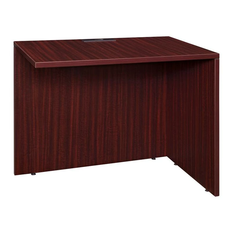 Legacy desking components are the framework for a complete office. This 47-inch long return attaches to Legacy Desk shells to create an L-Desk. Customize with pedestals or other storage options for a complete workstation. Adjustable glides on the bottom of the base keep the desktop level and are easy to adjust. A wire management grommet keeps cables clear of the work areas. Finished in a classic Mahogany laminate, this return coordinates with other Legacy furniture. The Legacy collection is constructed of a 1-inch thick thermal fused melamine laminate with a 3-millimeter commercial grade matching PVC edge. Laminates are scratch, stain and scald resistant. Legacy casegoods are backed by a 10-year limited manufacturer’s warranty.