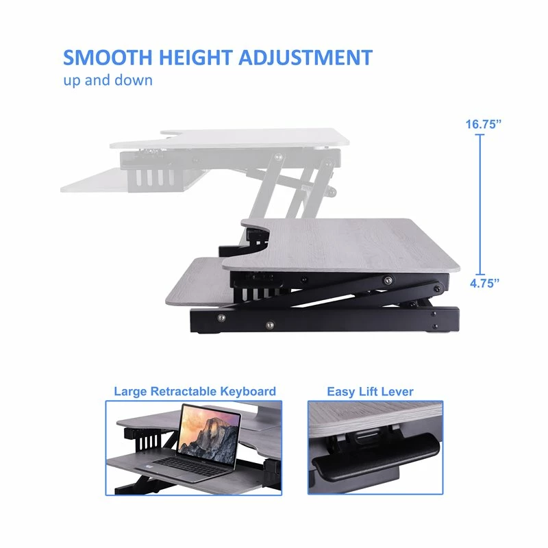 - Can raise and lower up to 30 pounds with continuous height adjustment from 4.75″ up to 16.75″ above desktop to optimize the ergonomic work position for people of most heights.