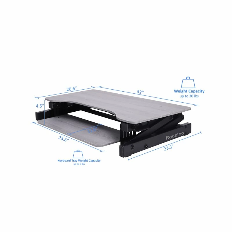 The ADR Standing Desk Converter gives you the best of both worlds. You can sit part of the day, as you always have, but you can also stand and take advantage of all the Health Benefits that come with standing and moving around. You, and your associates, will become healthier and more productive. Your ADR sits directly on top of your current desk…….so no need to buy all new furniture. The improved easy-grip side handle with gas piston assist, allows you to easily raise the large 32″ x 20.6″ desktop and keyboard tray into an infinite amount of position levels between 4.75″ and 16.75″ above your regular desk). The large top panel can hold 2 monitors or a monitor and a laptop. The ADR Sit to Stand Up Desk offers a large 23.6″ x 11.6″ Retractable keyboard tray that not only allows you to get into the most Comfortable and ergonomic position, but it is also large enough to hold a laptop computer (with other risers you may have to move the laptop or the entire riser every time you change from sitting to standing). It uses pneumatic gas pistons that allow you to easily raise or lower up to 30lbs. Fully assembled and ready to go!