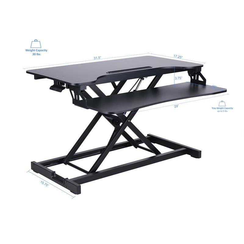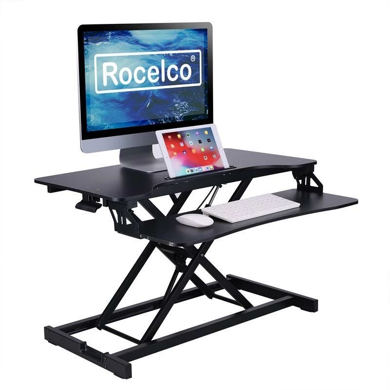 With its spacious 31.5 W x 16.4″ D work surface, you can hold up to 2 large monitors, a laptop, and more. It also includes an extra large keyboard tray that measures 30″ W x 10″ D that is an ergonomic 4″ below the desktop. EVR Enhanced Vertical Range rises up to 19.7″ and down to 4.3″, to optimize the ergonomic work position for people of all heights. Straight up and down motion minimizes required depth (17″). Gas piston assist allows you to easily raise and lower up to 30lbs. Grommet hole allows you to route cables or add an optional single or dual monitor arm such as the Rocelco DM1 or DM2. Fully assembled and ready to go! Our product comes with a MANUFACTURER LIMITED 1 YEAR WARRANTY as well as a customer service and tech support team that is always ready to help. The VADRB Height Adjustable Sit to Standing Desk Riser and Converter offers the versatility you need to get through your work day. It fits over your current desk with no need to buy additional furniture.