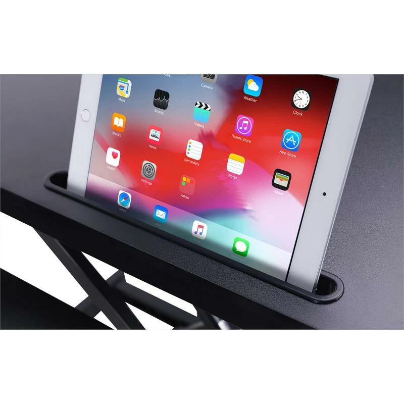 - ERGONOMIC KEYBOARD TRAY: 4″ spacing between keyboard tray and desktop keeps monitor at proper ergonomic height. Large 30″ x 10″ keyboard tray size will hold a laptop if needed. Quick disconnect keyboard tray allows portable use.