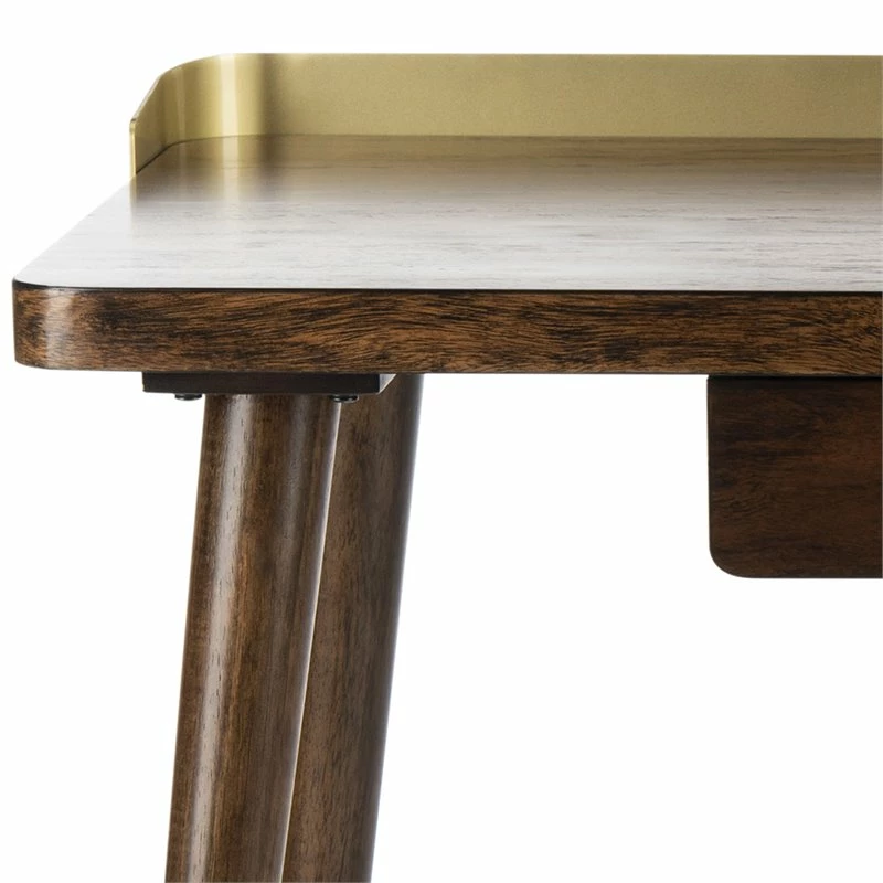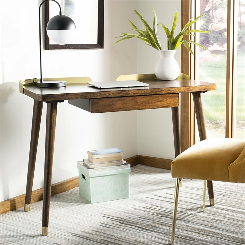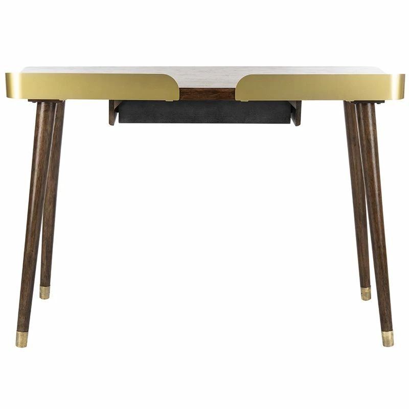 The focal point of any home office, this 1-drawer desk is a contemporary spin on retro style. Designed with a dark walnut finish, its deep palette is paired with vintage-style legs with gold finished caps. Its discreet drawer keeps clutter safely stored.