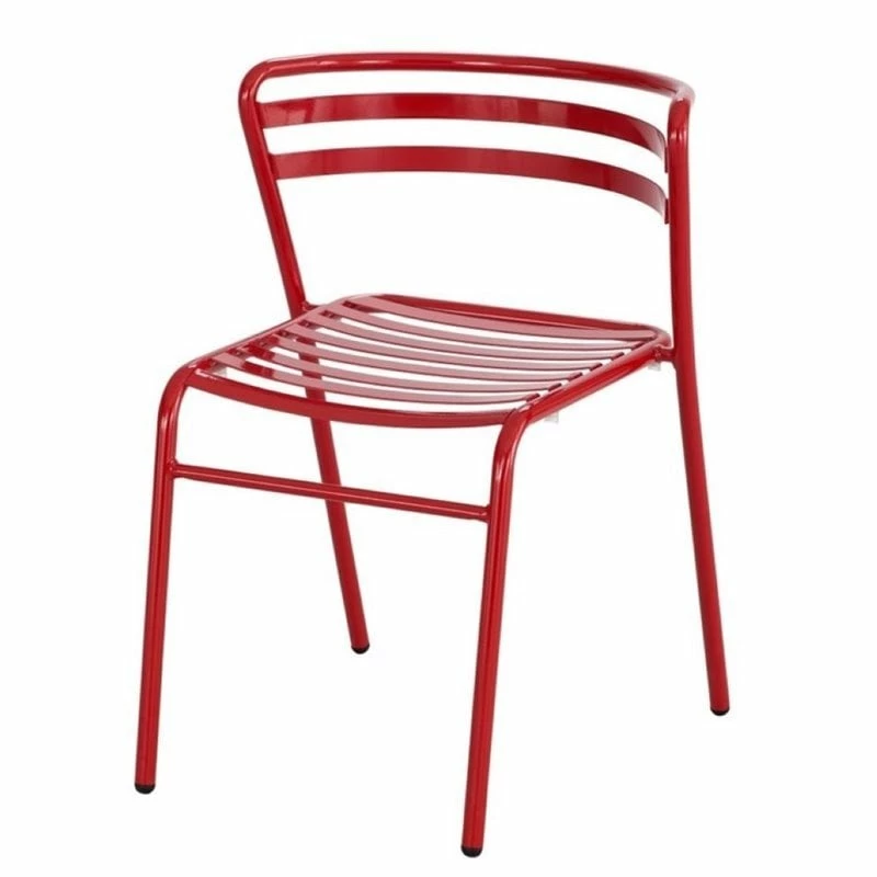 The CoGoâ„¢ Steel Outdoor/ Indoor Stack Chair is made of tubular steel with a scratch-resistant powder coat finish. They are outdoor rated for UV protection and repellant against moisture, heat and stains for a durbale stack chair that is ideally suited for outdoor use. These multipurpose metal chairs can also be used indoors and feature durable nylon glides on the base to guard against scratching or marring of surfaces. The curved back rest and open slat design allow for comfortable breathability during use. CoGo chairs stack up to 8 high for convenient storage when not in use. Great for use outdoors on patios or cafes or indoors in waiting rooms, lobbies, break rooms, training spaces or anywhere else a guest chair is needed. Packed two per carton.