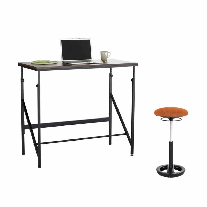 The Elevateâ„¢ Standing-Height Desk is a great desk option for a more active workday. Its height can be adjusted from 38-50″H to suit individual users for a more comfortable working experience. It also features an adjustable footrest for added comfort and support while standing, as well as to encourage more movement and to provide an outlet for fidgeting. The desktop has a melamine laminate construction and the base is made of steel with a powder coat finish for added durability and chip-resistance. The desk provides 30″ of workspace and the simplistic design of the tabletop allows the user to organize it any way they would like. This bi-level desk is great for use offices, personal workspaces and home offices.