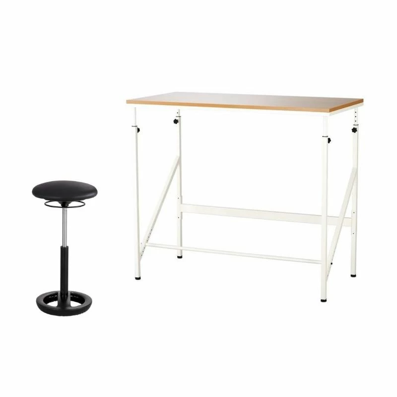 The Elevateâ„¢ Standing-Height Desk is a great desk option for a more active workday. Its height can be adjusted from 38-50″H to suit individual users for a more comfortable working experience. It also features an adjustable footrest for added comfort and support while standing, as well as to encourage more movement and to provide an outlet for fidgeting. The desktop has a melamine laminate construction and the base is made of steel with a powder coat finish for added durability and chip-resistance. The desk provides 30″ of workspace and the simplistic design of the tabletop allows the user to organize it any way they would like. This bi-level desk is great for use offices, personal workspaces and home offices.