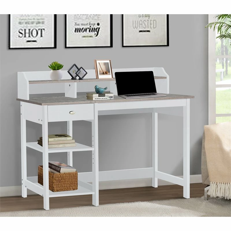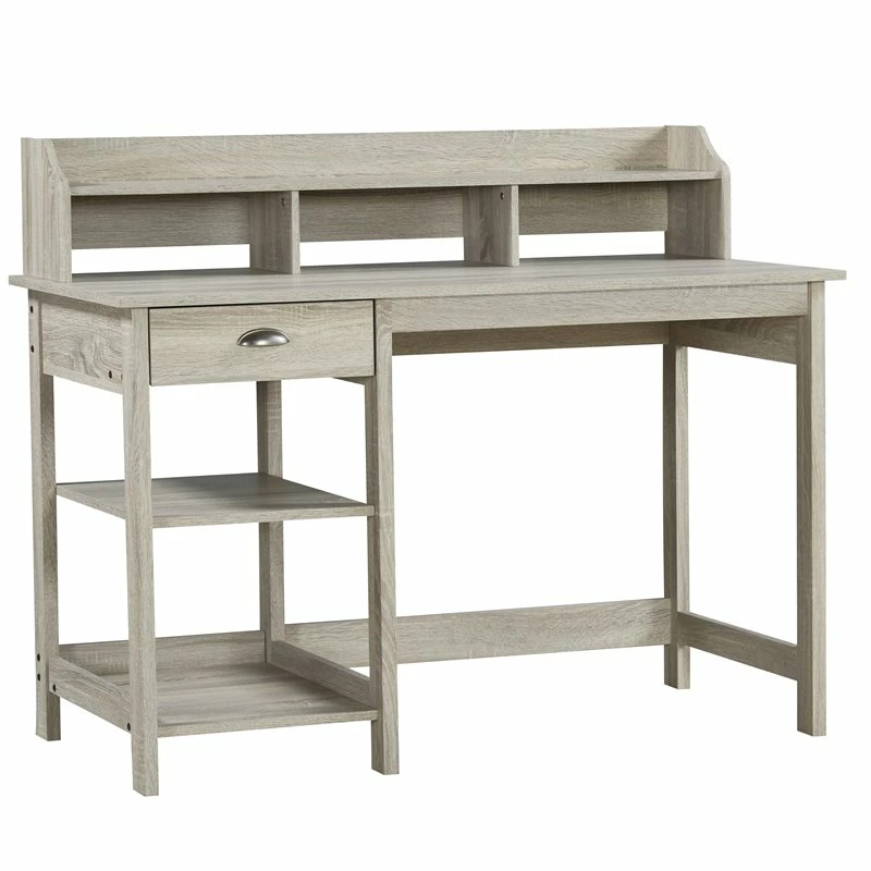 - Two roomy shelves on the writing desk and one shelf on the hutch to place decor or useful office items