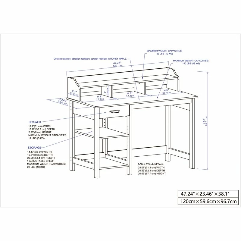 - Desk Dimensions : 38.1″H x 47.24″W x 23.46″D