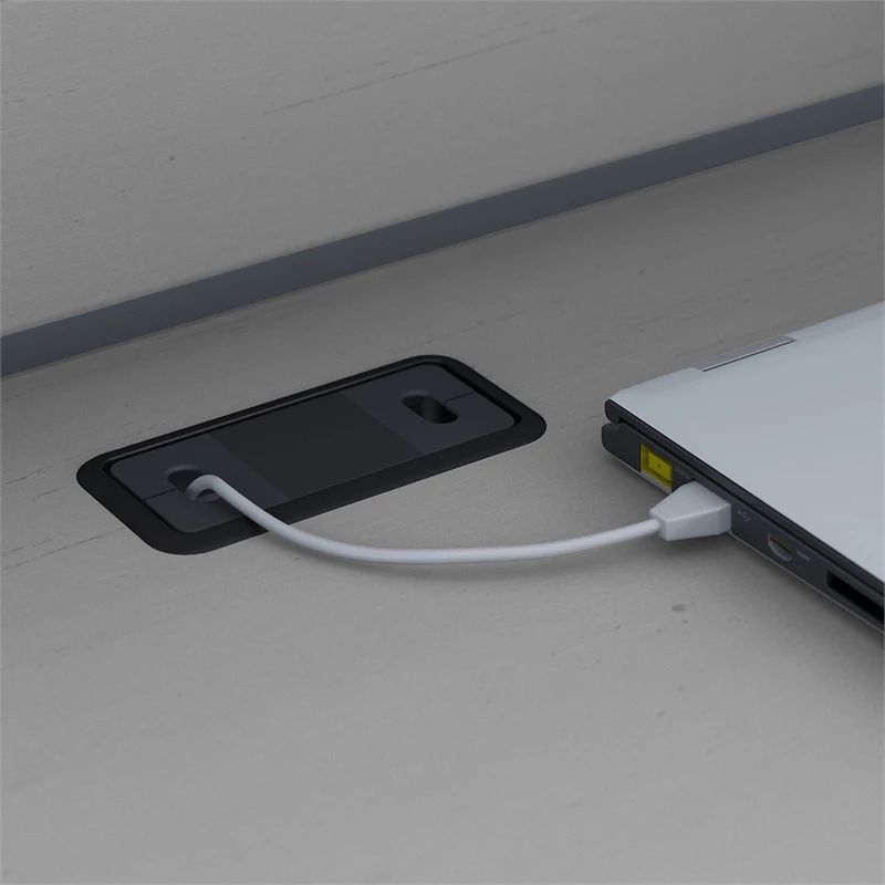 - Desktop includes wire management to keep your work area free from cords and cables