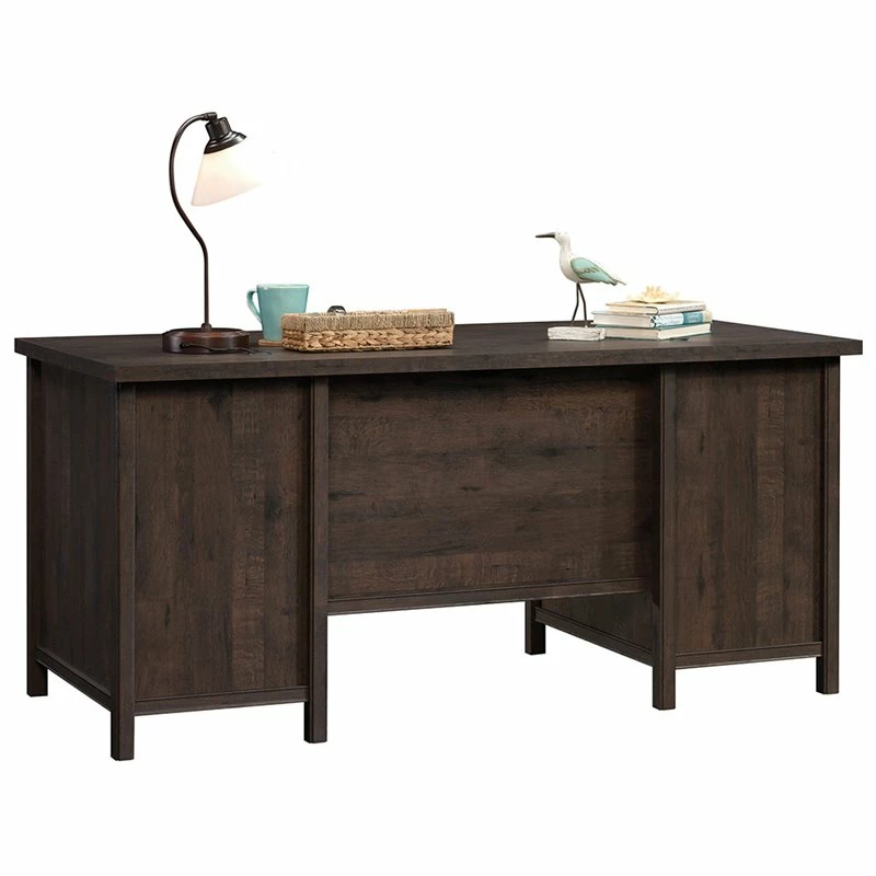 Give your home office or workspace a fresh new look with the cottage-inspired style of this executive desk from the Costa collection. It features a durable, 1” thick table top with a spacious surface so you can have room for all your office supplies – laptop, folders, a pencil container and even a little home décor. It features a large pencil drawer along with four storage drawers that open and close on smooth metal runners. Talk about storage space! The two lower drawers include full extension slides and hold letter or legal size hanging files for optimal organization of all your important papers and documents. It also features a cord management system with two desk top grommet holes so you can keep all your wires neat and out of sight. Finished in Chalked Chestnut® with framed, slat-front detailing, this executive desk adds a touch of coastal paradise to your office space.