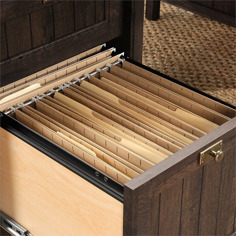 - Lower drawers with full extension slides hold letter or legal size hanging files so you can stay organized.
