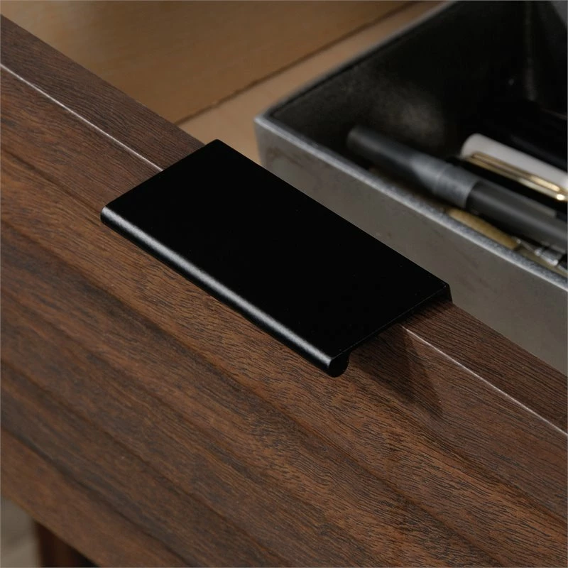 It goes without saying that contemporary style is in, and it is not going anywhere. Bring modernity into your home with the Englewood™ office credenza. Brandished with interesting geometrics, including vertical and horizonal paneling on the storage door and drawer front, this piece is bound to make a statement in any home. This multifunctional credenza desk can house a wide array of items—like home office essentials, books, and your favorite pieces of art. The top features a strong but lightweight 1″ panel construction for plenty of space to display what is important to you and your home. Behind each door is an adjustable shelf so you can customize your home office credenza to specifically fit your storage needs. A pull-out adjustable shelf offers a stylish but practical solution for displaying your printer. The storage drawer features metal runners and safety stops for ease of use and peace of mind. The Englewood™ credenza for office is stylish while also being easy and quick to assemble with a patented T-lock drawer system. Finished in Spiced Mahogany™ for a traditional, classic feel, the Englewood™ credenza for office is the much-needed addition to your home.