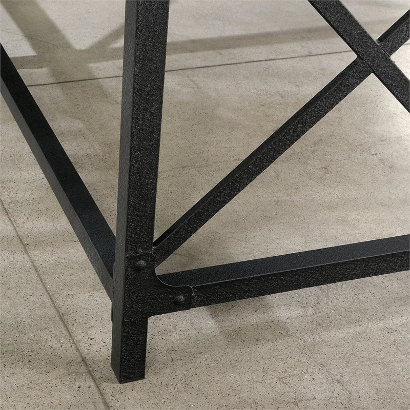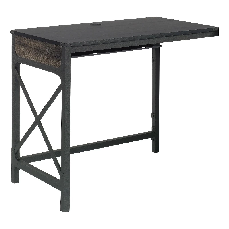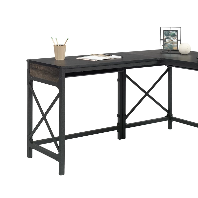 Take your commercial office furniture to the next level by adding a desk return. This 36-inch desk return from the Foundry Roadâ„¢ collection can be fastened to the left or right side of these commercial office desks: 428059 Desk 59″ x 24″ or 428155 Desk 59″ x 30″. This desk return table is designed with a textured, powder coated metal frame and corner accents for style and durability. The melamine top surface is heat, stain, and scratch-resistant and includes a grommet hole for channeling cords and cables. Impact resistant, high-grade thermoplastic edges for enhanced durability makes it the ideal commercial desk return. Create an L-desk configuration to provide extra workspace for your desk essentials like your coffee, printer, and day planner. Finished in Carbon Oak®, this industrial commercial office furniture is the convenient add-on to complete your office cubicle set-up or anywhere you need extra desktop space.