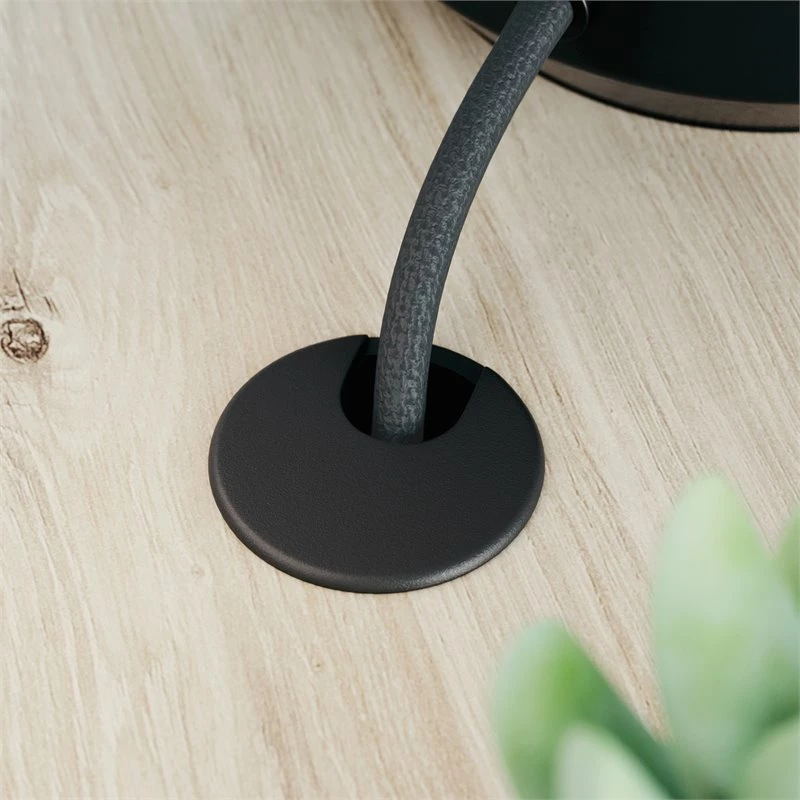 - Desktop grommets allow for easy to reach and organized electronic cords.