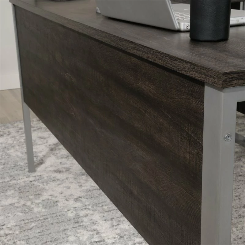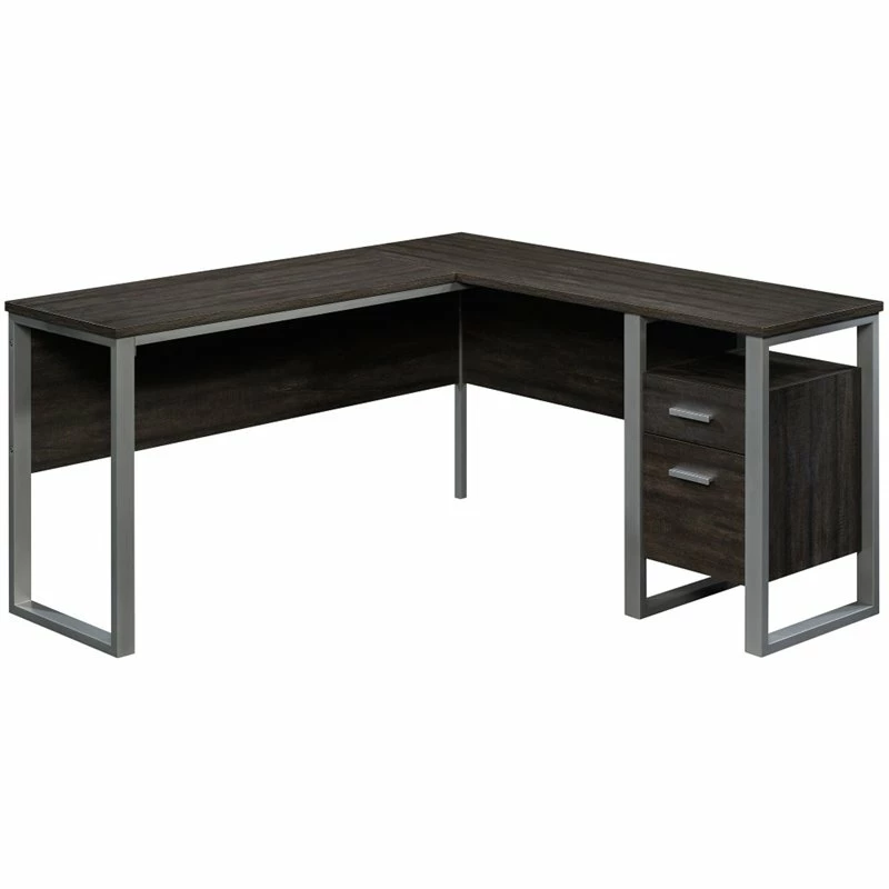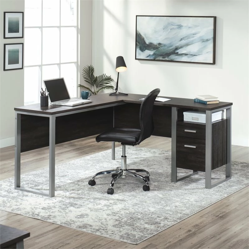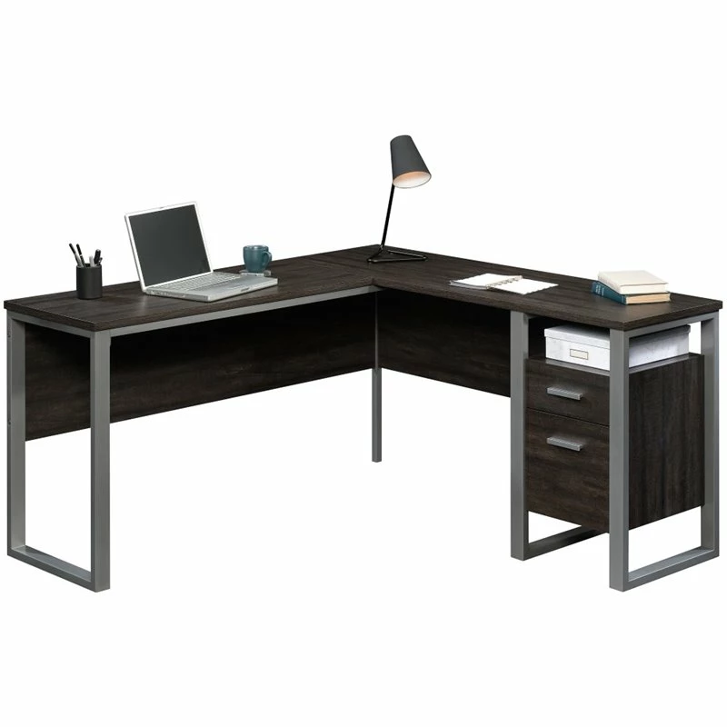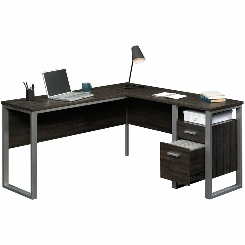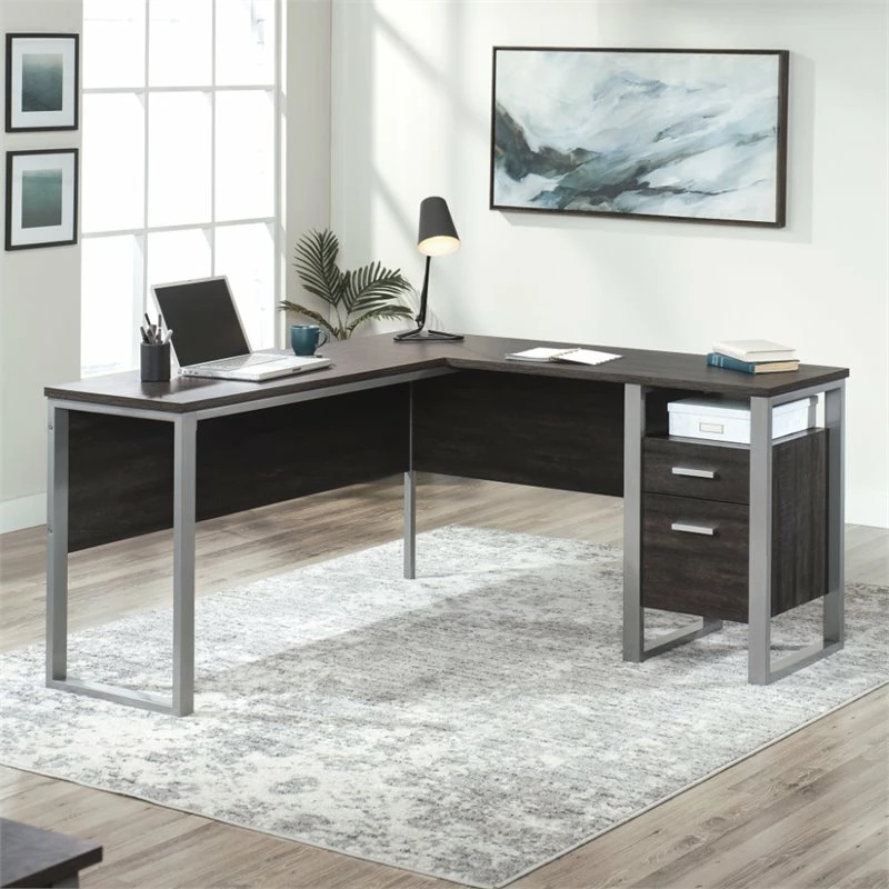 It’s time to give your office space the update it deserves! Create the perfect spot to work on all your big projects all while adding a beautiful touch of style and design with this L-shaped desk from the Rock Glen collection. This home office desk offers a spacious top surface that provides you with all the room your need for your office essentials like a laptop, telephone, work folders, and your hot cup of coffee. There’s also plenty of space for home décor items like an accent lamp and framed photos too. The small storage drawer opens and closes on smooth metal runners for easy access storage of miscellaneous items like envelopes and rubber bands. The lower drawer with full extension slides can hold letter-size hanging files for increased organization. Need more storage? There’s also an open shelf for convenient access of papers and supplies. Other features include a silver finish, powder coated metal frame and a lightweight 1” construction top. Finished on all sides in Blade Walnut™ so it can be placed anywhere in the room, this handsome desk will have your office looking top notch.