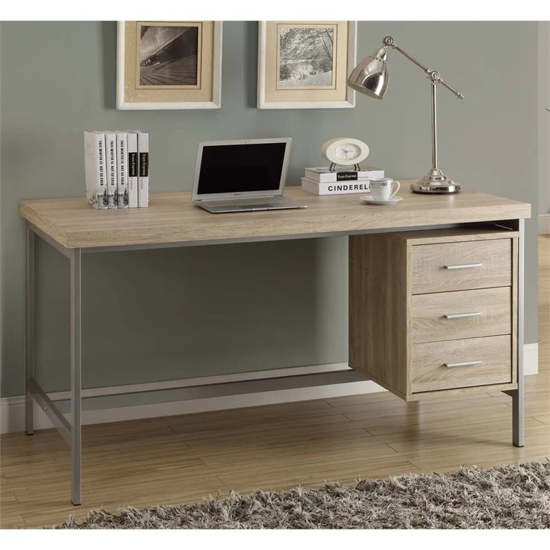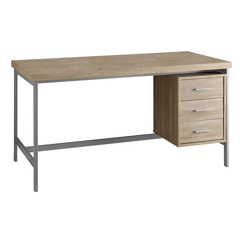 Your workstation needs to be both functional and easy on the eyes. To serve that purpose, this office desk is there for you with all you need to get the job done. A sturdy silver metal frame, 3 convenient storage drawers and a natural pine wood-look finish on all sides – a recipe for success! The 60-inch length provides more than enough surface space for a computer, lamp, notebooks and more.