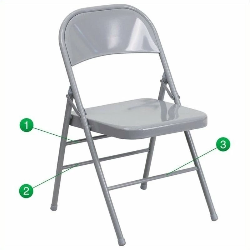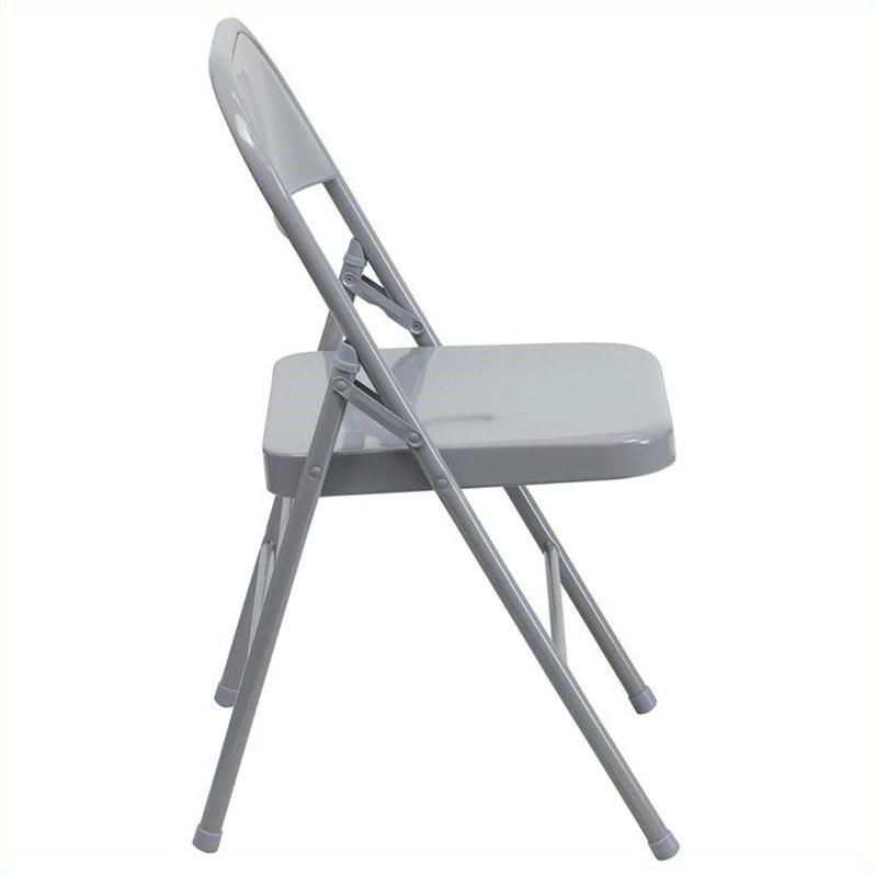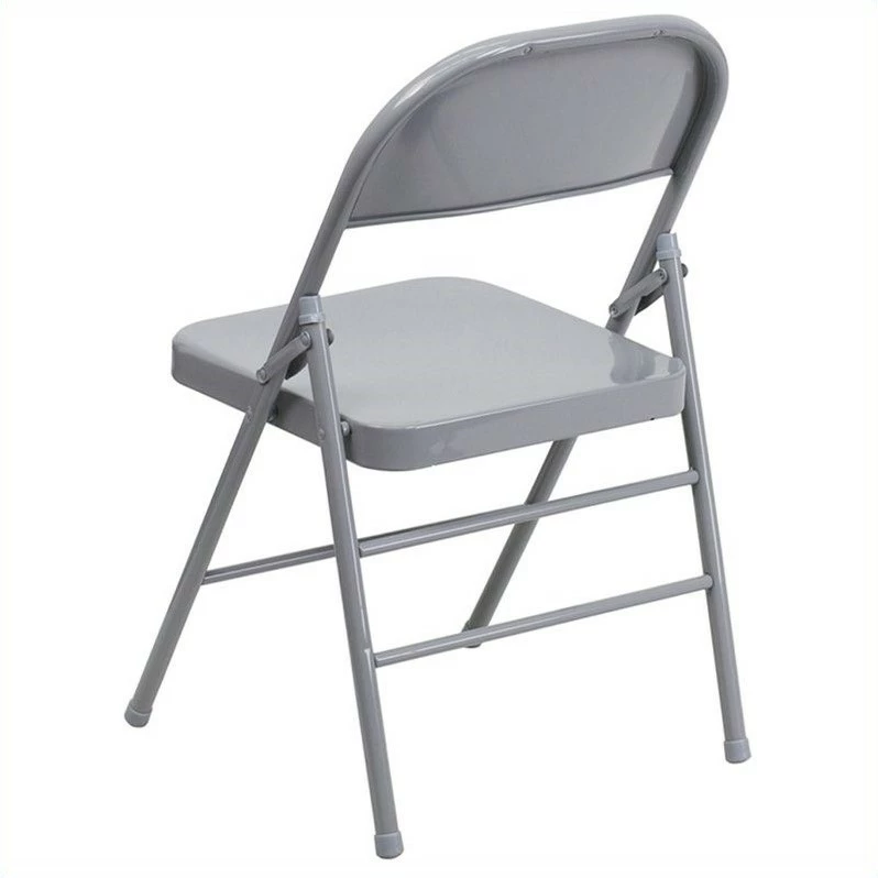 - Triple braced and quad hinged metal folding chair in gray