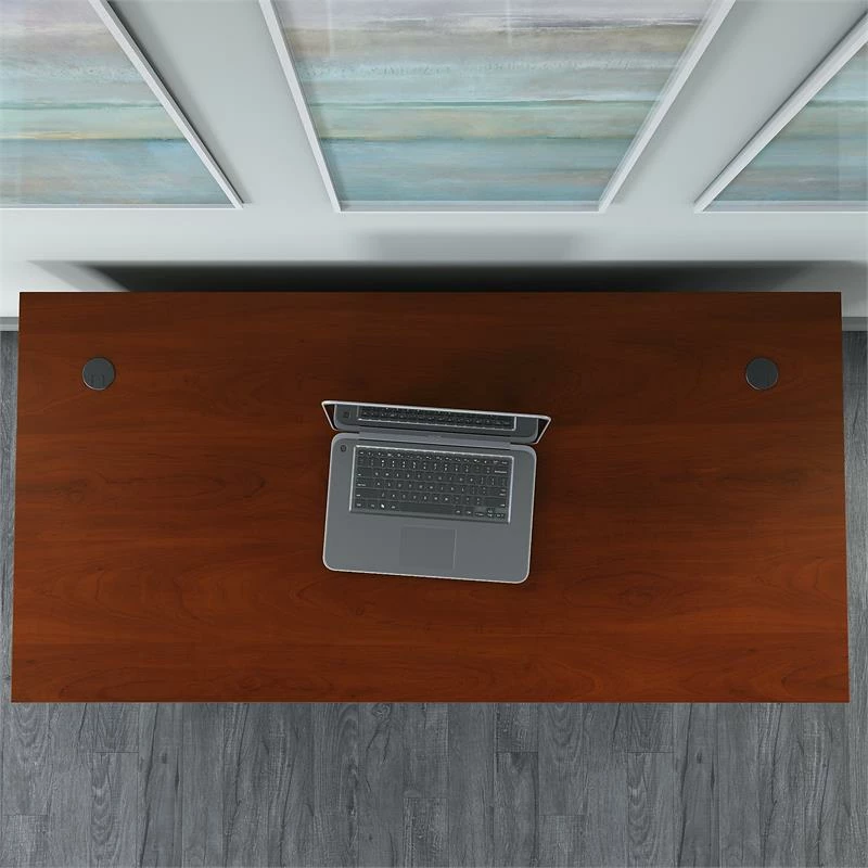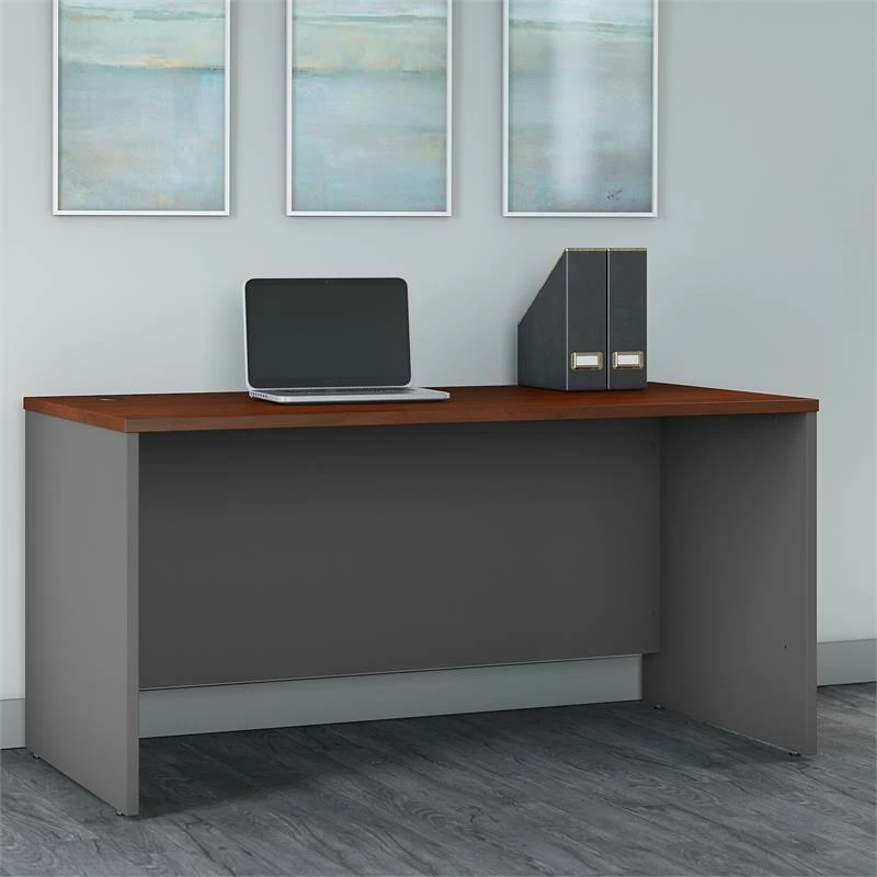 The Bush Business Furniture Series C 60W x 30D Office Desk combines classic styling with the commercial quality construction needed to thrive in today’s work environments. Built to endure the rigors of a busy professional office, the durable thermally fused laminate work surface and sturdy end panels protect the computer desk from scratches, nicks and dings to preserve its appearance throughout years of everyday use. The spacious 60-inch desktop boasts a weight capacity of 200 pounds, allowing it to support multiple monitors, equipment and other materials while two built-in wire management grommets keep cords and cables in order. Find the perfect look for your workspace with four traditional finish options. This Commercial Office Desk is tested to meet ANSI/BIFMA quality standards for safety and performance and is backed by a 10 Year Warranty. American made with U.S. and imported parts.