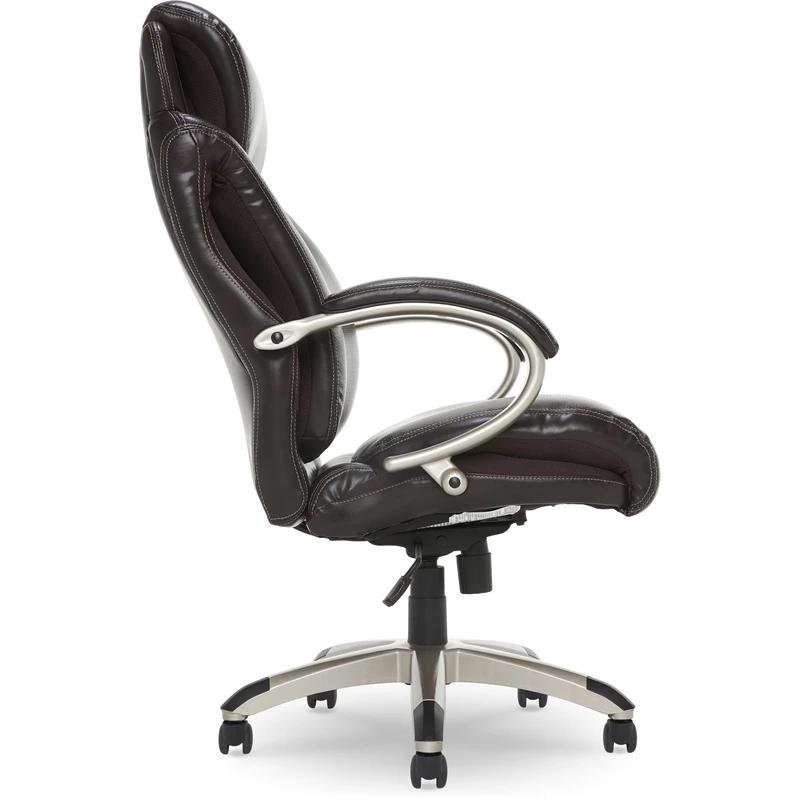 From a brand known for its quality, comfort and style, the Serta Dayton Big & Tall Leather Office Chair is designed to be significantly more comfortable and supportive than traditional office chairs. With its larger and wider design and durable Big & Tall components, this heavy-duty office chair accommodates up to 350 lbs. A reactive AIR lumbar zone helps maintain proper posture by flexing and twisting with your movements, supporting positive neutral spine positioning and promoting better spinal health and wellness. Built for lasting comfort, this ergonomic office chair has layered body pillows that provide cushioned support in areas you need it most. The easy-access adjustment controls let you change the height, tilt, lift, lumbar support and arm placement, so you can customize the chair’s position for maximum comfort and improved body alignment.