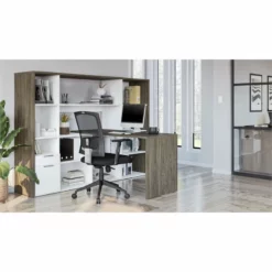 Bestar I3 Plus L Shape Computer Desk With Hutch In Bark Gray