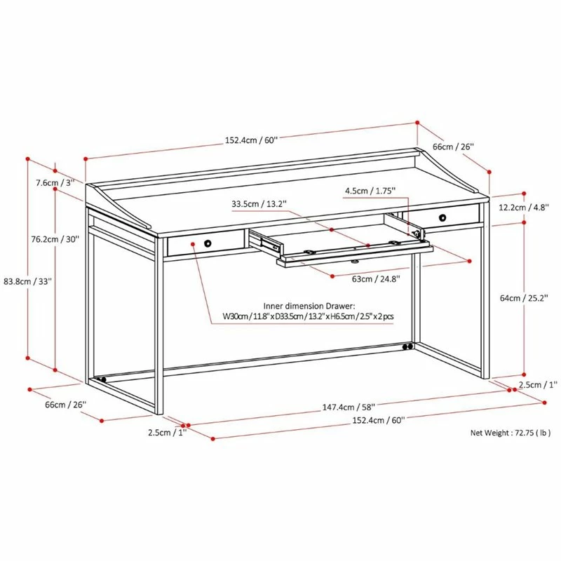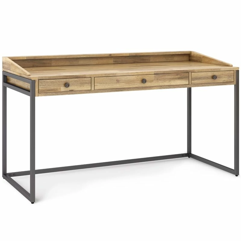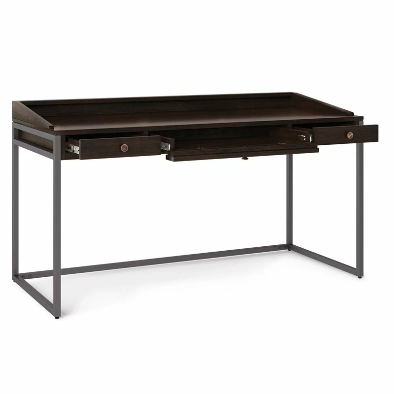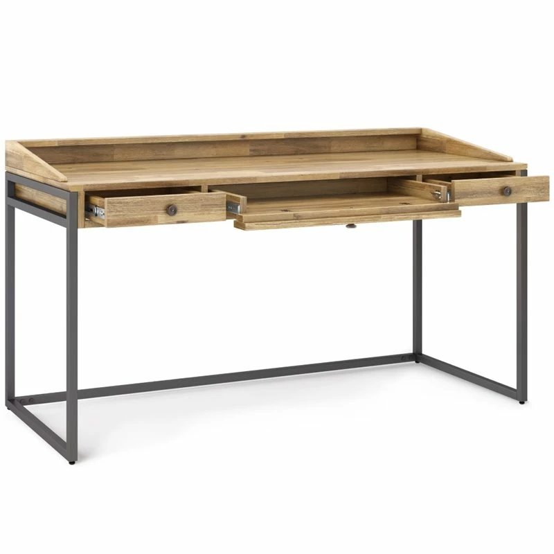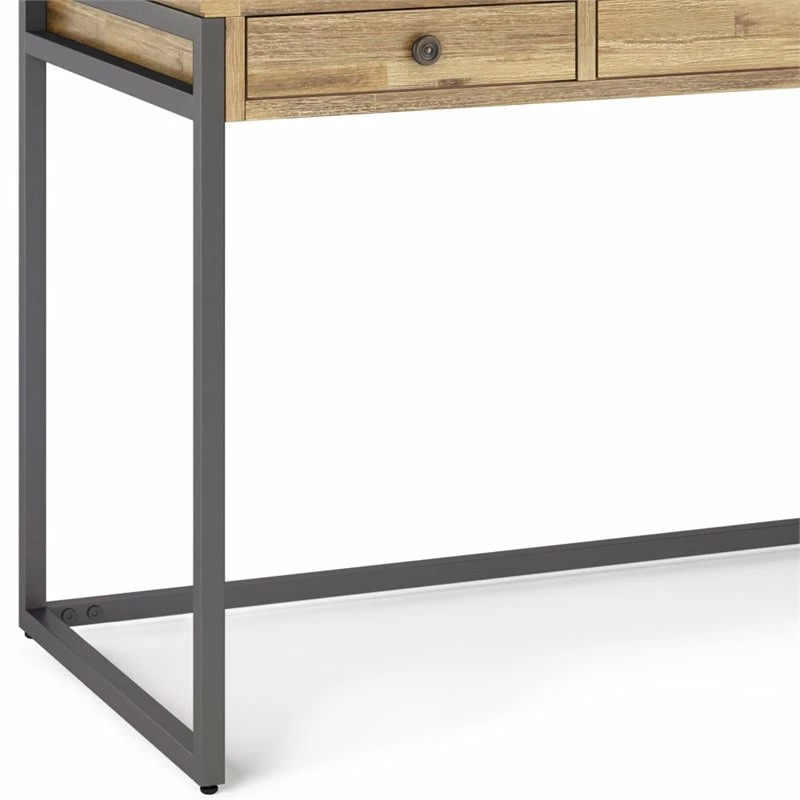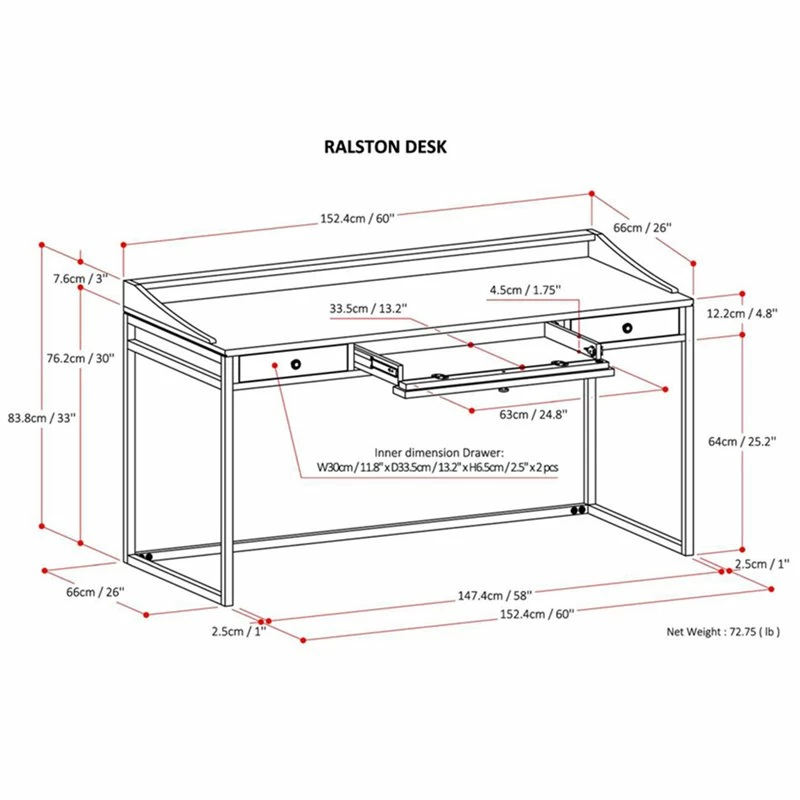 Combine industrial style and function with the Ralston desk. This desk is crafted of solid Acacia with solid metal legs and frame. Generous in size, this desk offers a spacious top surface and includes a keyboard tray for added convenience. Two side drawers provide plenty of space for small office supplies. It is a versatile and stylish addition to your home or office work space.