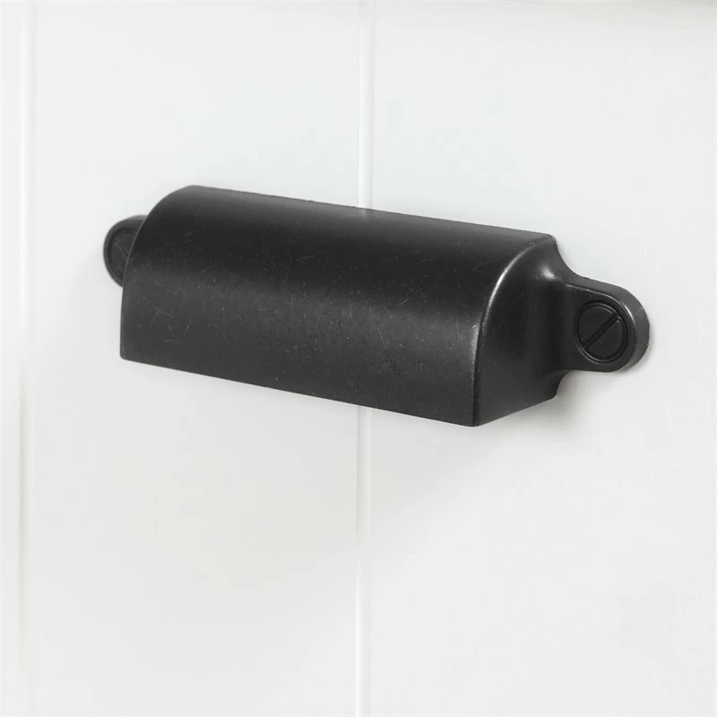- Metal handles in a Black finish. Large work surface for whatever you’re working on; Grooved door for a cottage style