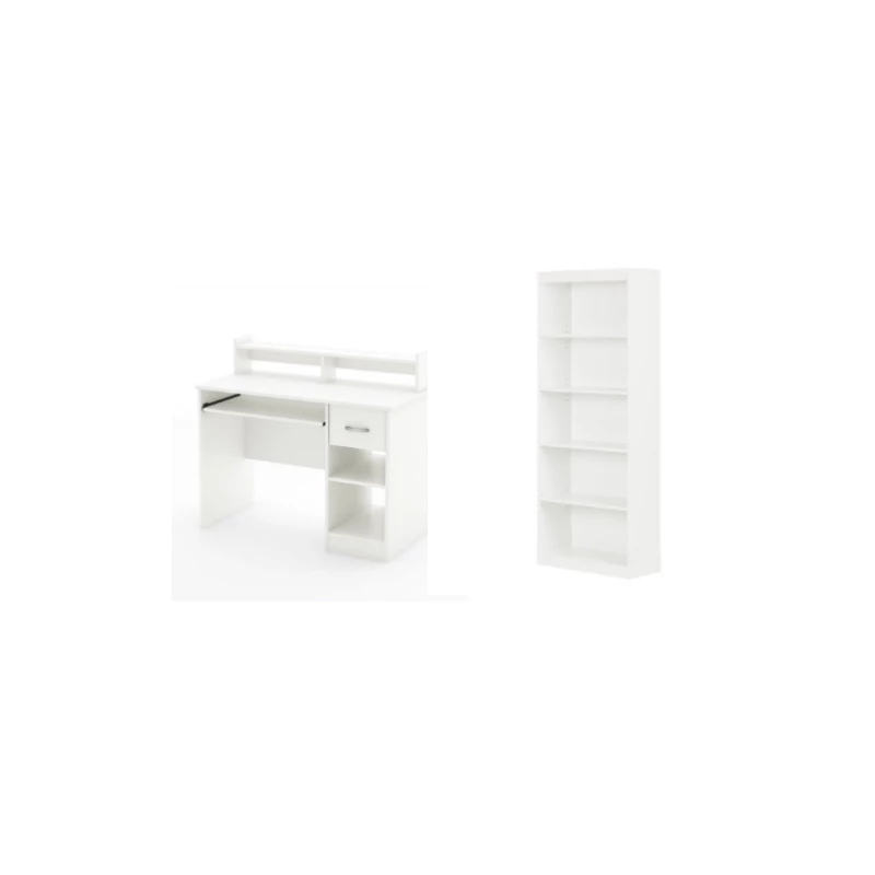 Desk in Pure WhiteThis Axess Desk in Pure White finish is the perfect answer to organizing clutter in your child’s room. It features a compact design yet includes space for everything needed for schoolwork and projects. A low hutch offers shelving for books or keepsakes, and the desktop, plenty of room to spread out homework or a house laptop. Under it, you will find a keyboard tray, one practical drawer with a silver finish metal handles and a storage compartment divided by an adjustable shelf.