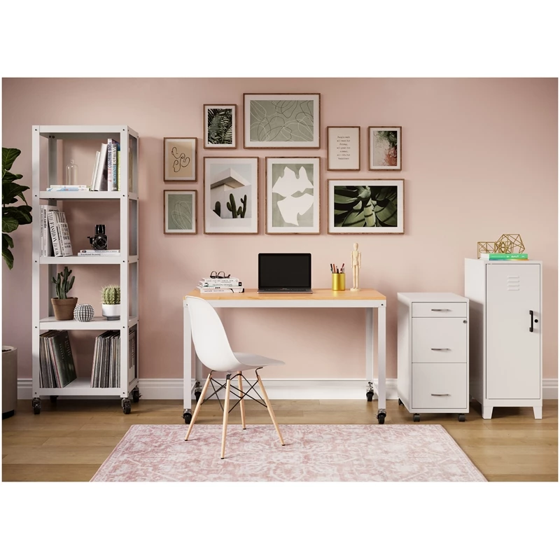 The White Mobile Desk is part of our Home Office Collection. Our contemporary office collection offers a minimalist style that suits any work type, personal or professional. Our mobile desk features durable, steel construction to provide strength and support for long-term use. At 48 inches wide, our mobile desk is the perfect size for your small office or home office set-up. The clean, simple design integrates well into any space and makes it easy to pair a mobile file cabinet or bookcase for additional storage. The spacious workspace provides you with ample leg space and the 4 wheels make it easy to move to any space in your home or office. The Mobile Desk does require assembly upon delivery.