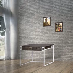 This 48x” 24x” 30” rectangular table with Gray Wooden and Black Powder Coat Metal finish is perfect for student’s bedrooms, home offices, or living rooms! This piece has a smooth and antiqued gray countertop with two drawers with attractive handles that complement the thin black legs. Built for durability and functionality, this piece is perfect to be used as either a writing desk or a surface to place items on! This modern-style mid-century table adds a touch of charm and personality to your home.