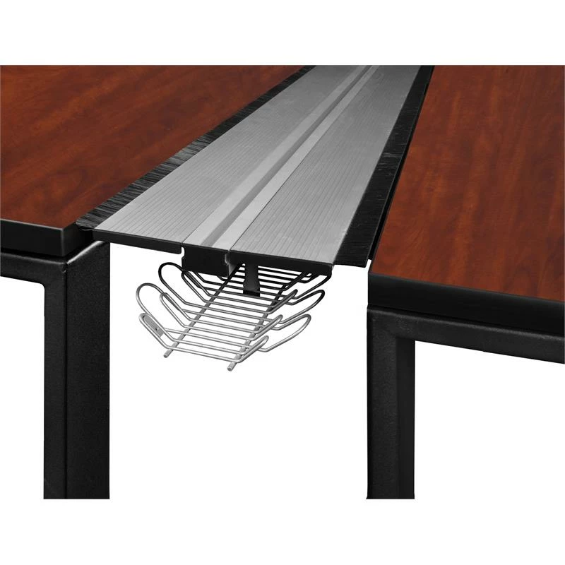 - A flip-top cover provides instant access to a wire management tray underneath that keeps cables clear of both desktops and floors