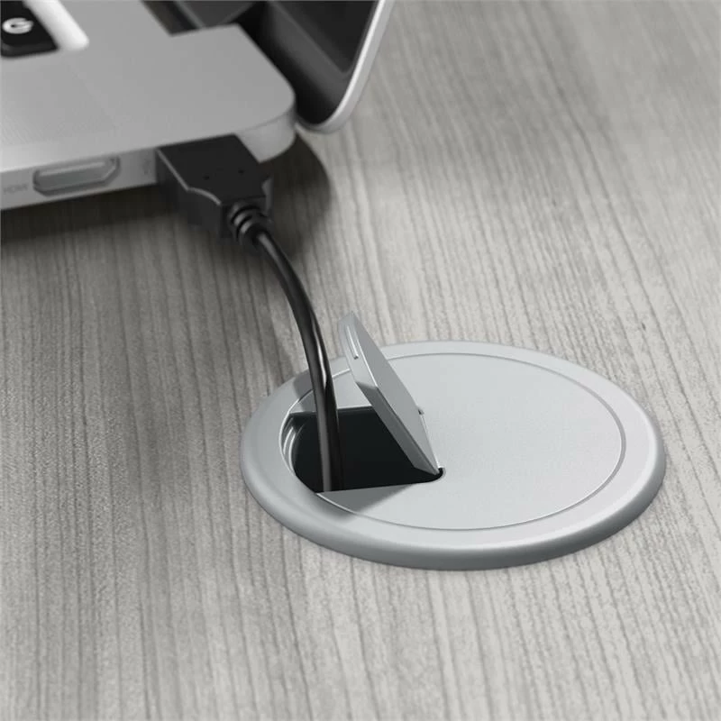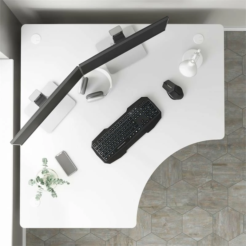 - Corner office desk’s surface includes a built-in wire management grommet to keep cords and cables in order
