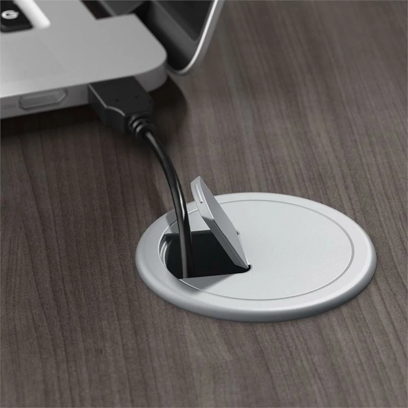 - 60-inch desk surface includes two built-in wire management grommets to keep cords and cables in order