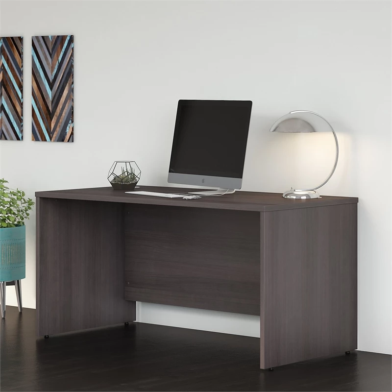 Choose the Bush Business Furniture Studio C 60W Office Desk for a durable design that works hard for years with a fresh finish that looks great anywhere. A thick surface, an extended modesty panel and clean lines convey a classic look that’s available in several contemporary or traditional finishes to fit any workspace. The thermally fused laminate finish, durable edge banding and sturdy end panels resist scratches, stains and dents while standing up to the rigors of a 40-plus hour work week. Keep pesky computer cords out of your way with an integrated cable management system for an organized work surface. This computer desk is backed by a 10 Year Manufacturer’s Warranty and meets ANSI/BIFMA quality test standards for safety and performance. See the full collection for coordinating items available to make your office your own with Studio C. American made with U.S. and imported parts. Materials: Engineered wood and Laminates.
