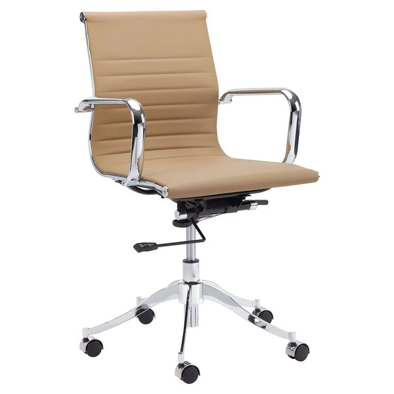 This stylish and practical office chair from our Urban Unity collection is stocked in onyx, tan and snow faux leather on the front and back with a stainless steel frame and legs. Castors allow for mobility. Perfect for office spaces. Handle With Care: This design has been crafted with faux leather. Faux leather is manufactured to reflect the natural characteristics of leather; as such, colour variations, markings, wrinkles, grooves, and light scratches are appreciated characteristics. No two pieces will be alike. Visit our Product Care page for more information on how to ensure the lasting beauty of this piece.