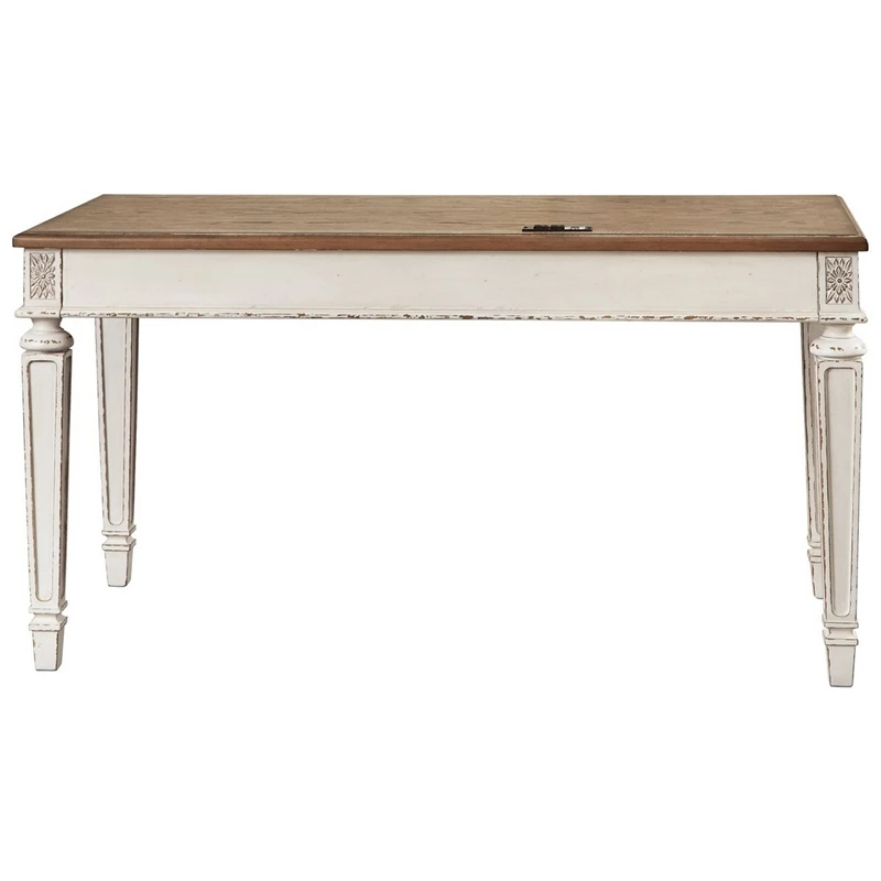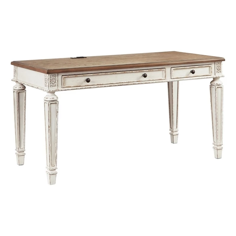 This wooden office desk is elegant and suave due to its mix of old school Victorian design touched up with a hint of modernity. It has carved floral design with tapering and square shaped turned legs.