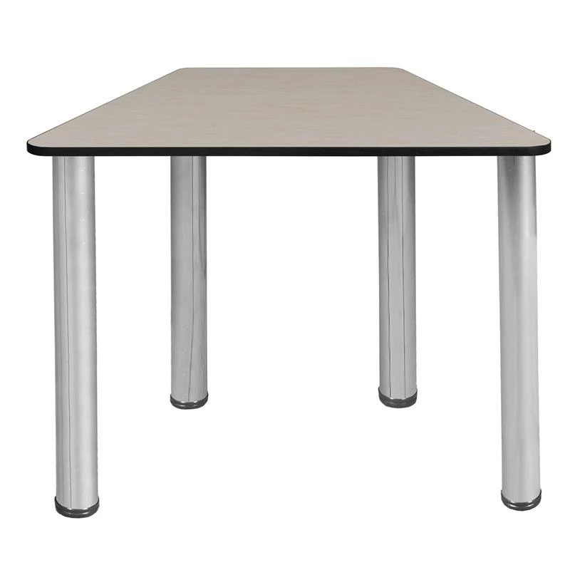 This attractive trapezoid shaped school desk is great for classrooms, dorm rooms, schools, libraries- anywhere individual work/study space is required. Use as single student desks or group together for a larger work surface or for a collaborative setting. Kee post legs come four to a set and include adjustable leveling glides so you have a steady table with no wobble. This 36-inch wide student desk assembles in a snap with just a few screws. The desktop is constructed of a thermal fused melamine Maple laminate tabletop that is 3/4″ thick making this table lightweight as well as durable. The slim profile tabletop is finished with a black edge band. Laminates are scratch, stain and scald resistant and wipe clean easily. Rounded corners make the table safer for everyone. A sleek alternative to pedestal style bases, this set of post legs comes in a modern Chrome to match any decor. The legs are constructed of tubular steel with adjustable glides on the bottom of the base. Kee desks are backed by a 10-year limited manufacturer’s warranty.