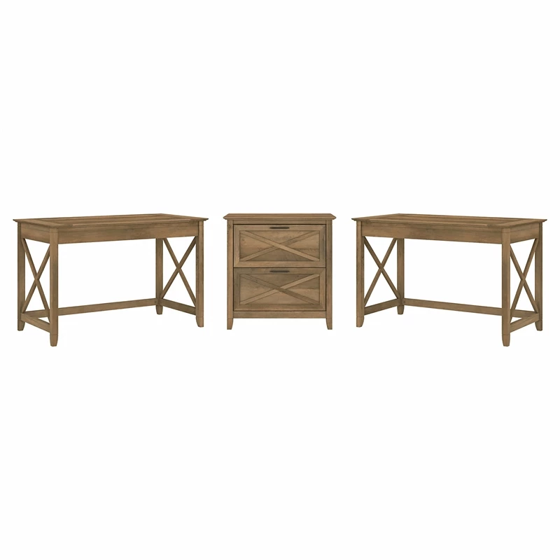 - Bundle includes: Set of 2 48W Writing Desks, 2 Drawer Lateral File Cabinet