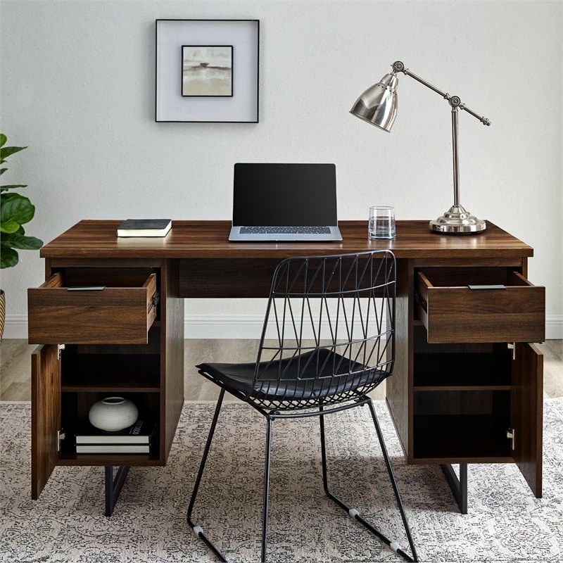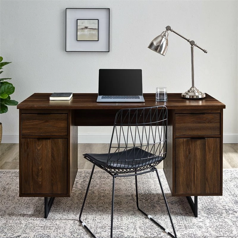 Revamp an office with a show-stopping executive bureau. This ultimate working Desk Dimensions comes with two telescoping drawers, two adjustable shelves, and two doors with soft-close hinges to host all your storage needs. Its sled feet design blends traditional style into a modern silhouette. Stifle out the competition for ‘best office space’ from your coworkers or rival professors. One side shows off all your most impressive displays while the other offer you with discrete storage options. And with powder-coated steel and warp-resistant wood, your new executive Desk Dimensions is made to last.