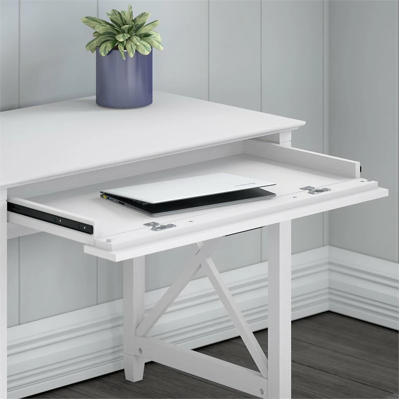 The UrbanPro 54W Computer Desk with 2 Drawer Lateral File Cabinet offers a refreshing approach to working in your home. Spread out with a computer, books and paperwork on a durable 54W x 24D desktop that boasts a weight capacity of 200 pounds. The convenient top drawer is an ideal place to store your keyboard or laptop and has a flip down front that folds up neatly when not in use. The Desk also includes a built-in storage cabinet with one adjustable shelf to accommodate materials of various sizes. The lateral filing cabinet’s drawers open on smooth full-extension ball bearing slides for an easy reach to legal and letter size documents. Unique X pattern accents create a relaxed feel with a sturdy and attractive post leg design. This office desk with drawers set is tested to meet ANSI/SOHO quality standards for safety and performance and is backed by a 1 Year Warranty.