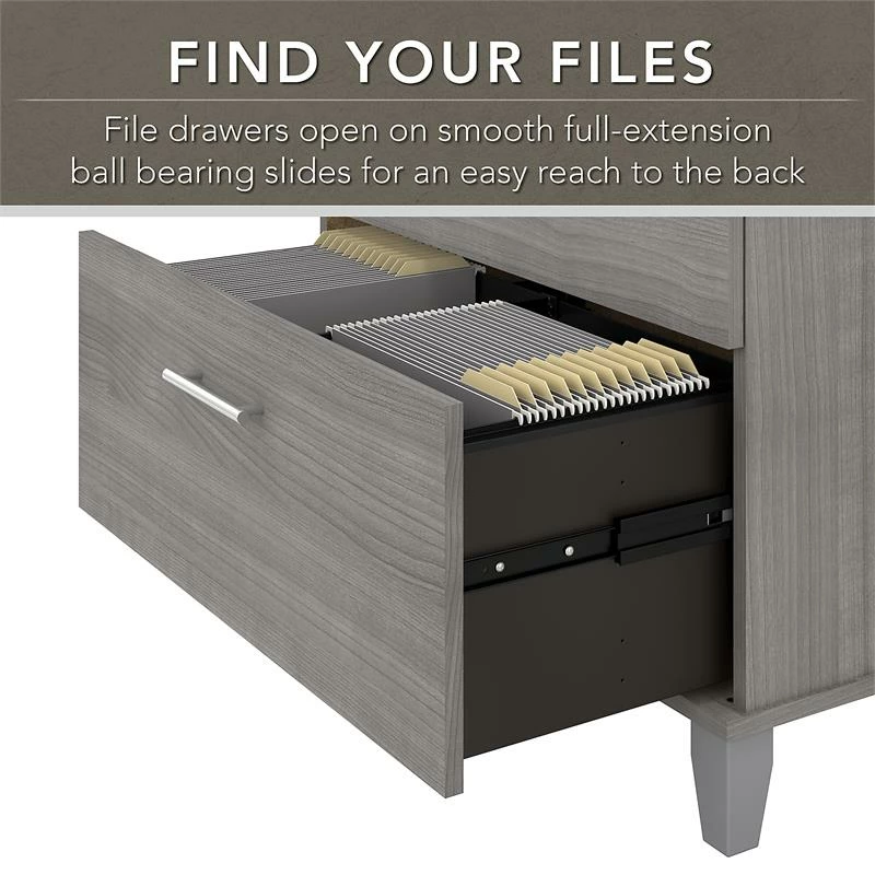 - File drawers open on full-extension ball bearing slides and hold legal and letter sized documents
