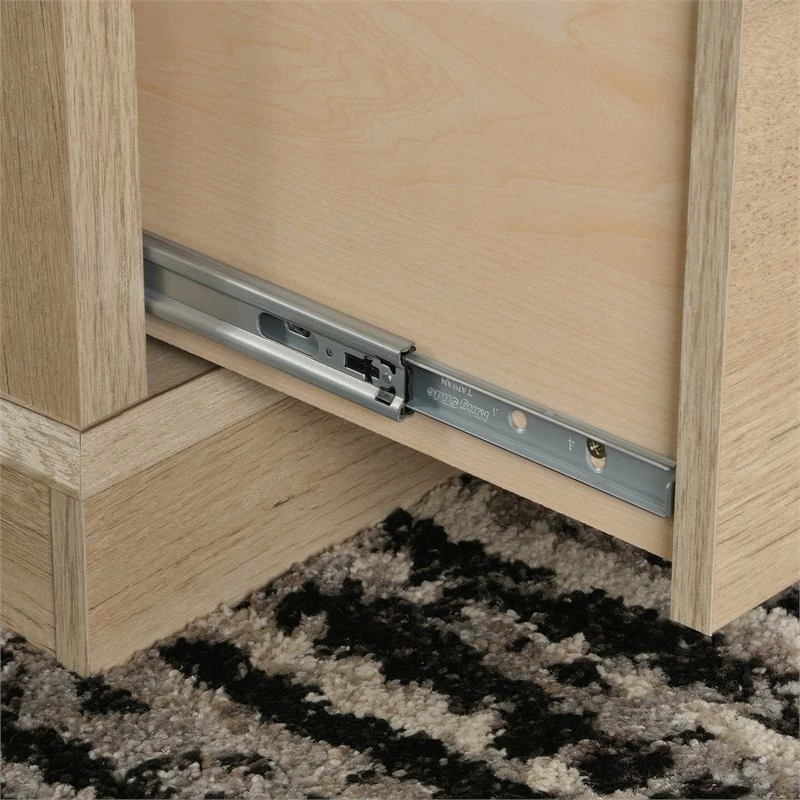 - Two pencil drawers and two storage drawers feature metal runners with safety stops.