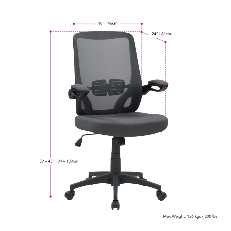 - Gray fabric mesh backrest design is breathable and well-ventilated