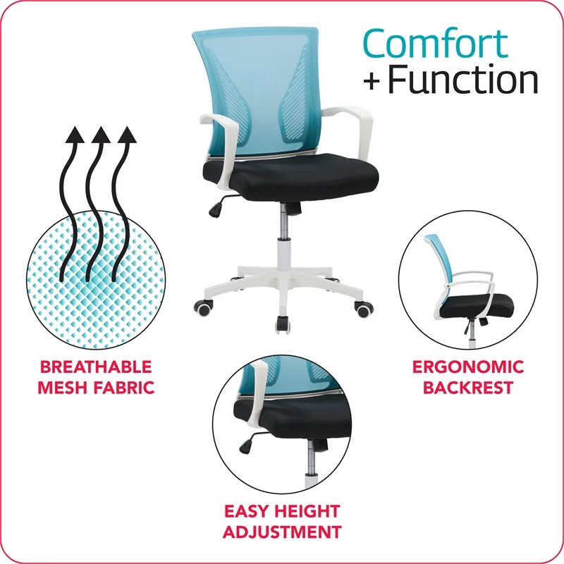 - Teal blue fabric mesh backrest design is breathable and well-ventilated