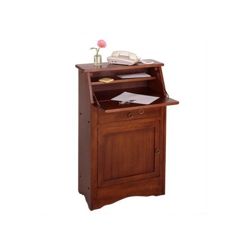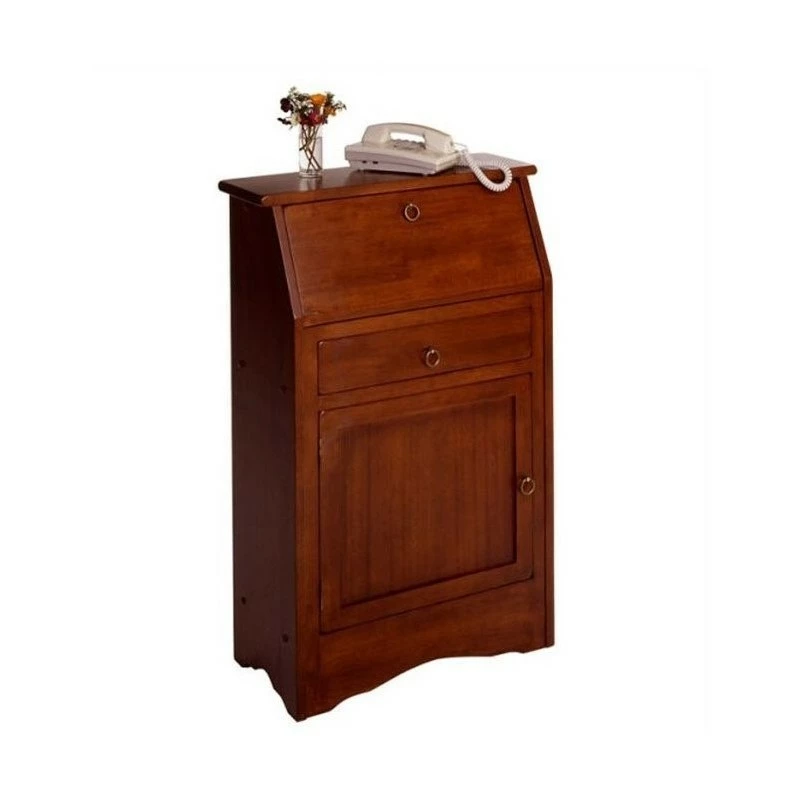 A traditional design and yet multifunctional high desk that can go well in any room, the Winsome Wood Regalia Secretary Desk. Classily design in a rich walnut finish that would mesh well with just about any décor in your home. The top cabinet door opens down creating a perfect table top, making this a great writing surface. Store your calculator, note pads, writing utensils, and other smaller accessories on the two inner shelves. The makeshift desk will stand up at 29.27″H. Grab your laptop and pull up a stool (sold separately). Once all done, fold the desk, back up into the slanted position to hide away supplies. Right under is a drawer, great for storing your tablet and easier to get to accessories. Ideal unit for a studio apartment or for those trying to keep the desk area compact. This desk has storage space from top to bottom. The compartment at the bottom opens up to a removable shelf. Keep paper and more desk/ office supplies put away behind a closed door and out of sight. Constructed of sturdy solid and composite wood. This table is packed and shipped in 1 box, along with the hardware necessary for assembling the table. Replacement part request can be submitted directly to the manufacturer within 60 days from date of purchase.