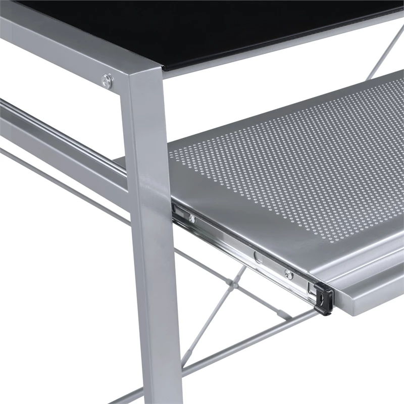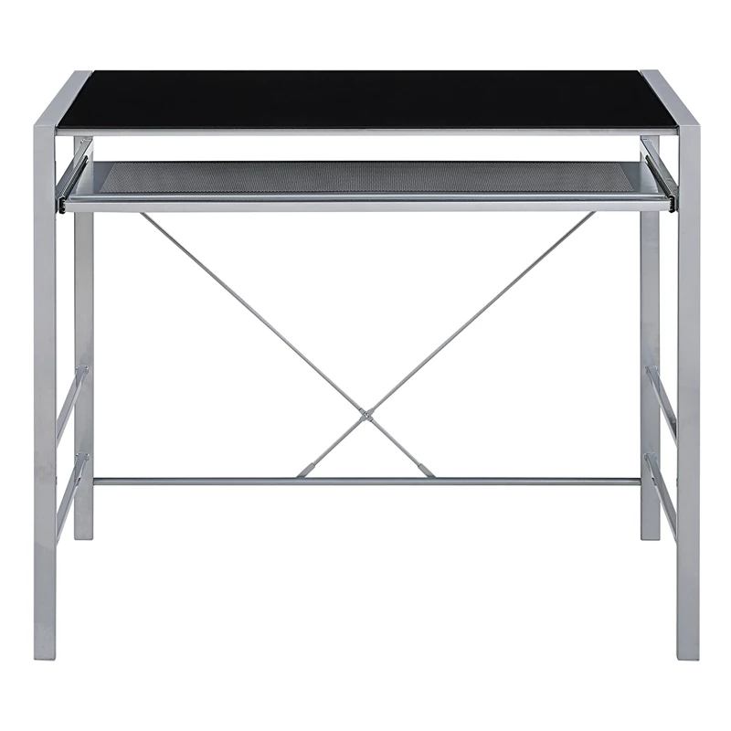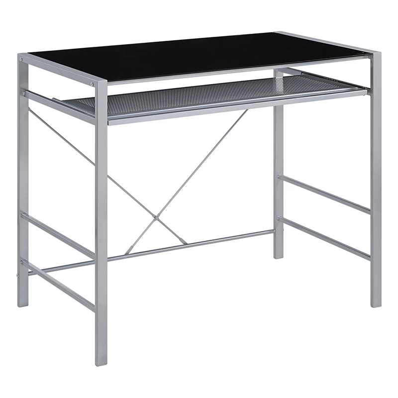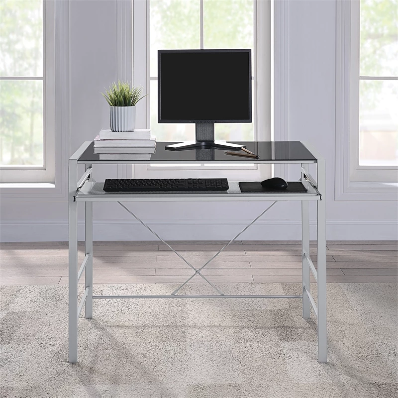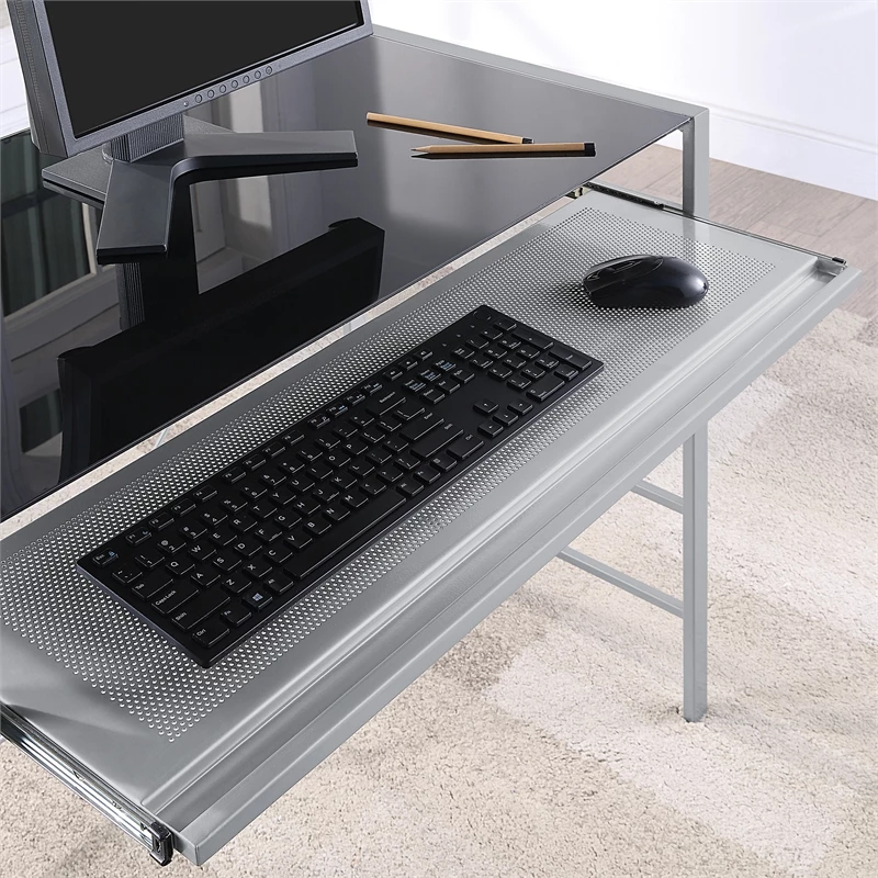 Give your home office both style and function with our Zephyr Computer Desk with a convenient pull-out keyboard shelf. The attractive tempered glass top will provide an easy-to-clean surface, ready to house your computer monitor, keyboard, and all of your office accessories. The heavy-duty steel frame ensures years of durable good looks and will help define a place for remote working, homework, and projects. Ready to assemble with easy-to-follow instructions.
