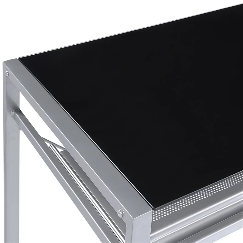 Zephyr Computer Desk with Black Tempered Glass Top and Silver Steel Frame